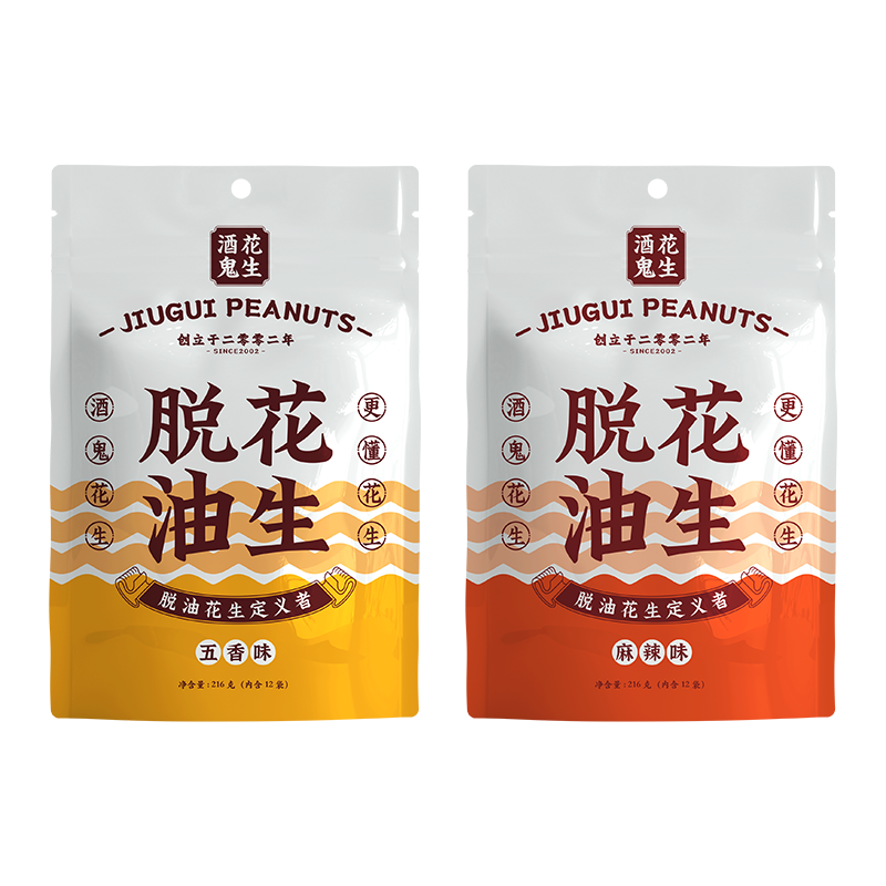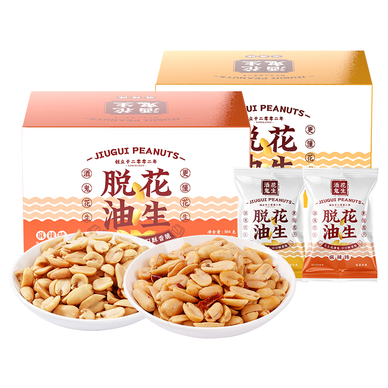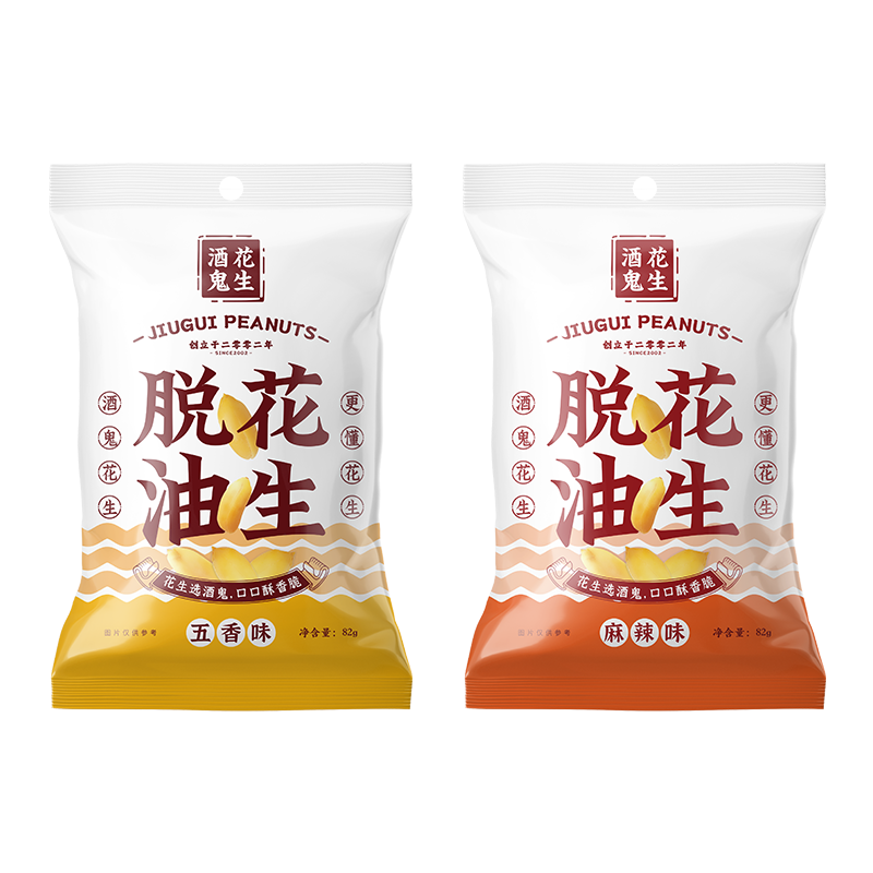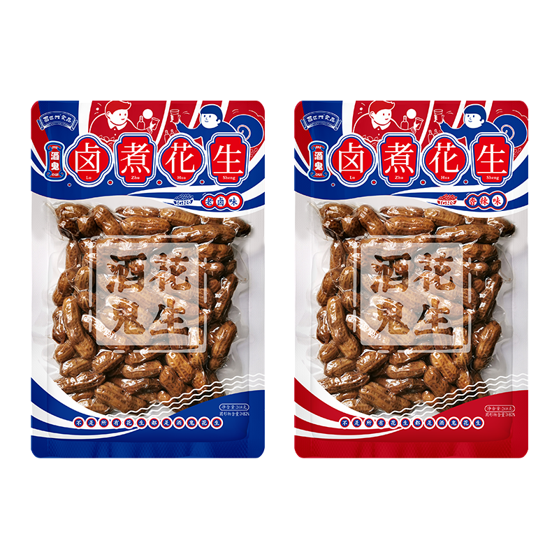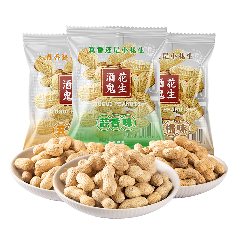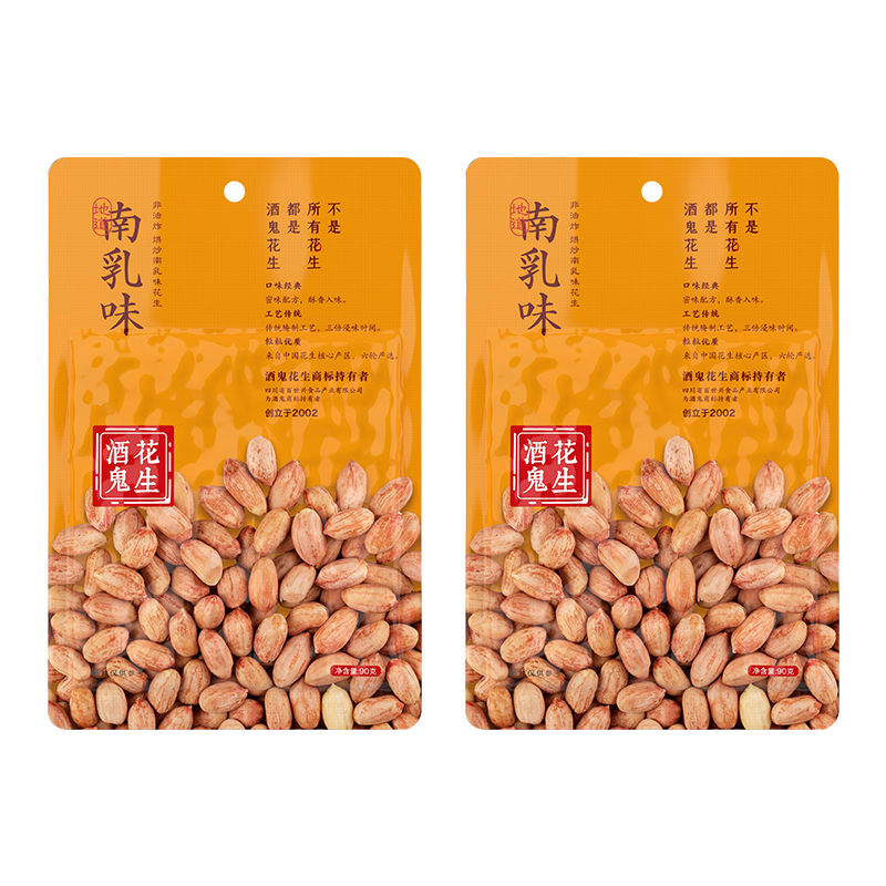 酒鬼花生選用大粒飽滿花生,每10顆花生中只有1顆才有機會成為酒鬼花生,采用二十道非遺工藝加工,配以醇香小榨菜籽油,打造出香、酥、脆的酒鬼花生。