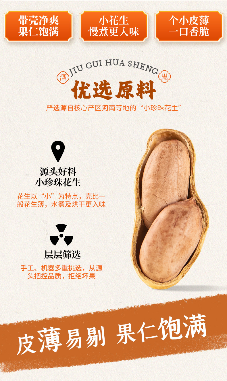 酒鬼花生·帶殼真香小花生山核桃味402克